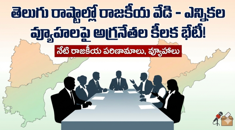 Read Moreఆంధ్రప్రదేశ్ మరియు తెలంగాణలో రాజకీయ వాతావరణం వేడెక్కింది. రాబోయే స్థానిక సంస్థల ఎన్నికల నేపథ్యంలో ప్రధాన పార్టీలన్నీ వ్యూహ ప్రతివ్యూహాల్లో మునిగిపోయాయి. అభ్యర్థుల ఎంపిక మరియు మేనిఫెస్టో