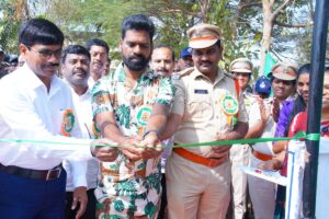 సత్య సాయి స్కూల్లో ట్రాఫిక్ పార్కును ప్రారంభిస్తున్న సినీ నటుడు బిత్తిరి సత్తి